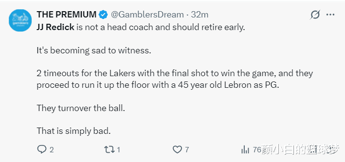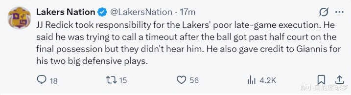 湖媒:雷迪克根本没有请求暂停,这才是我对湖人失去信心的原因之一。这场比赛真的糟透了。