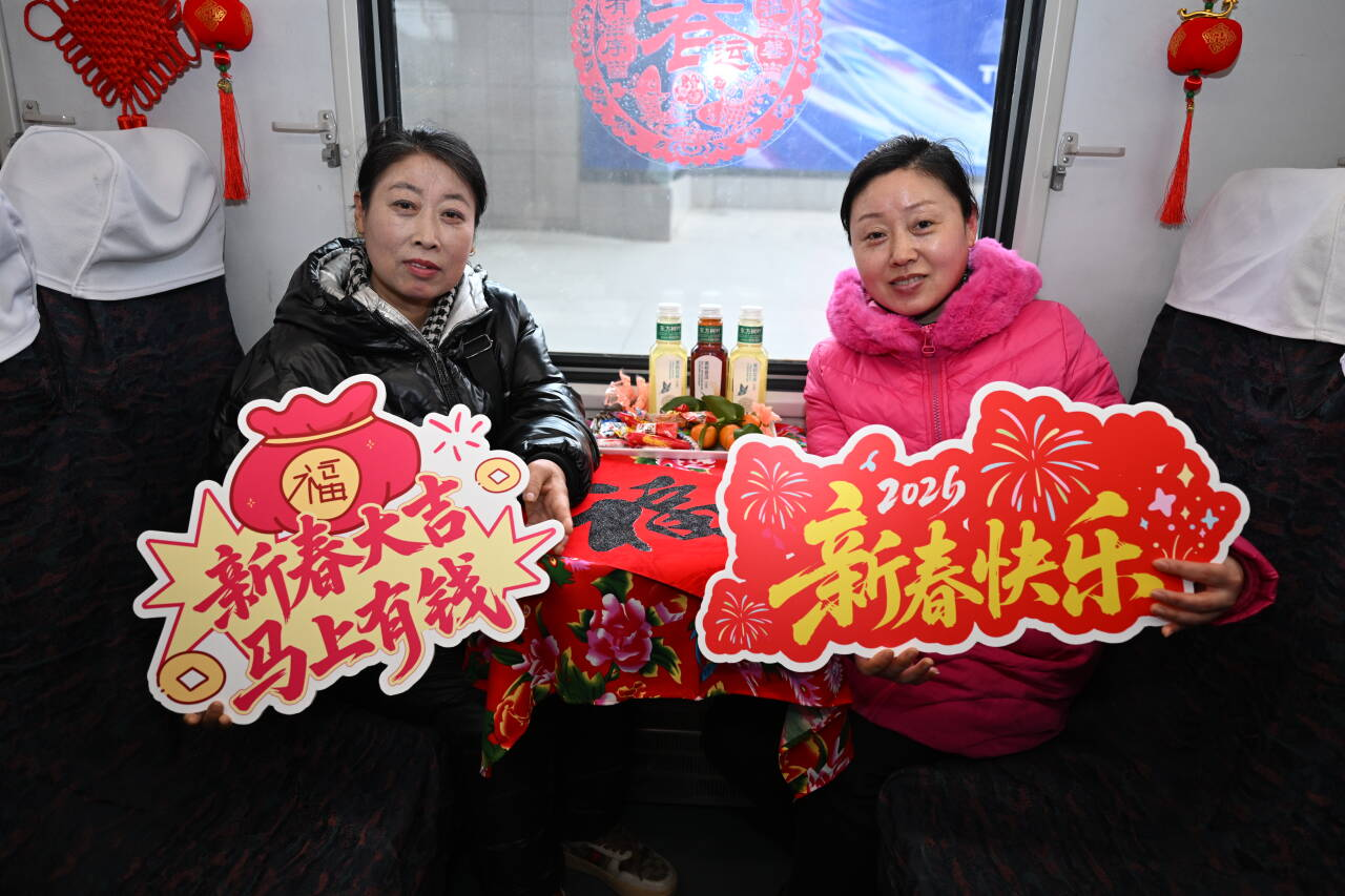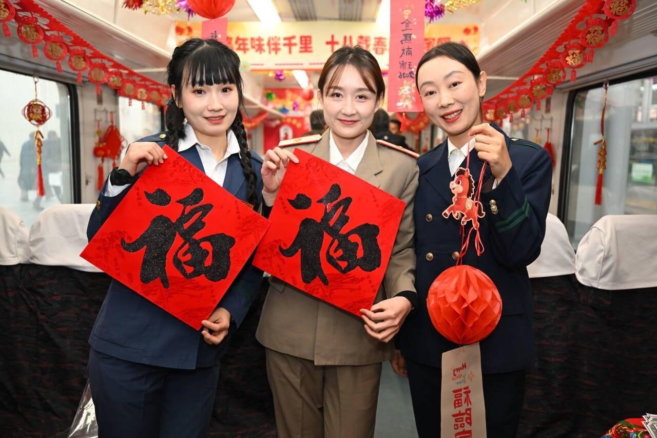“我们一踏上列车就感受到了浓浓的年味,糖瓜、瓜子摆满了餐桌,列车工作人员通过唱歌、猜灯谜、送福字等互动形式让我们感受到年离我们近了,家也更近了。”乘客宋女士笑着说道,言语间满是归乡的喜悦。小年当天,大连客运段在列车上精心举办“一路年味伴千里 十八载春秋护团圆”主题活动。歌舞、灯谜、送福、互动游戏……车厢化作流动的“年味空间”,让漫长的归途变成了一场温馨的聚会。