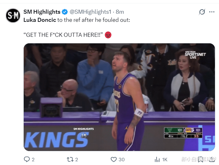 东契奇吞下六犯后还朝着裁判喷垃圾话:GET THE F*CK OUTTA HER。