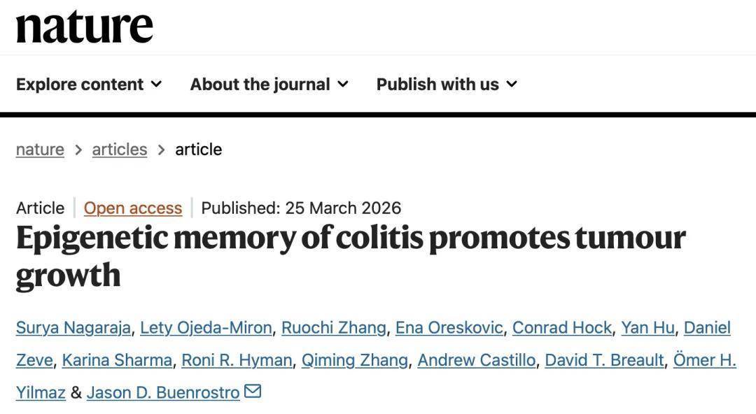 ①Nagaraja, S., Ojeda-Miron, L., Zhang, R. et al. Epigenetic memory of colitis promotes tumour growth. Nature (2026).