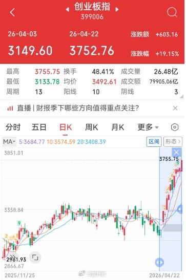 近期以来,随着美伊冲突进入谈判拉锯阶段,市场对中东危机逐步脱敏,A股三大指数持续修复,创业板指更是迭创十年新高。截至4月22日收盘的过去12个交易日,创业板指累计涨幅已超过19%。