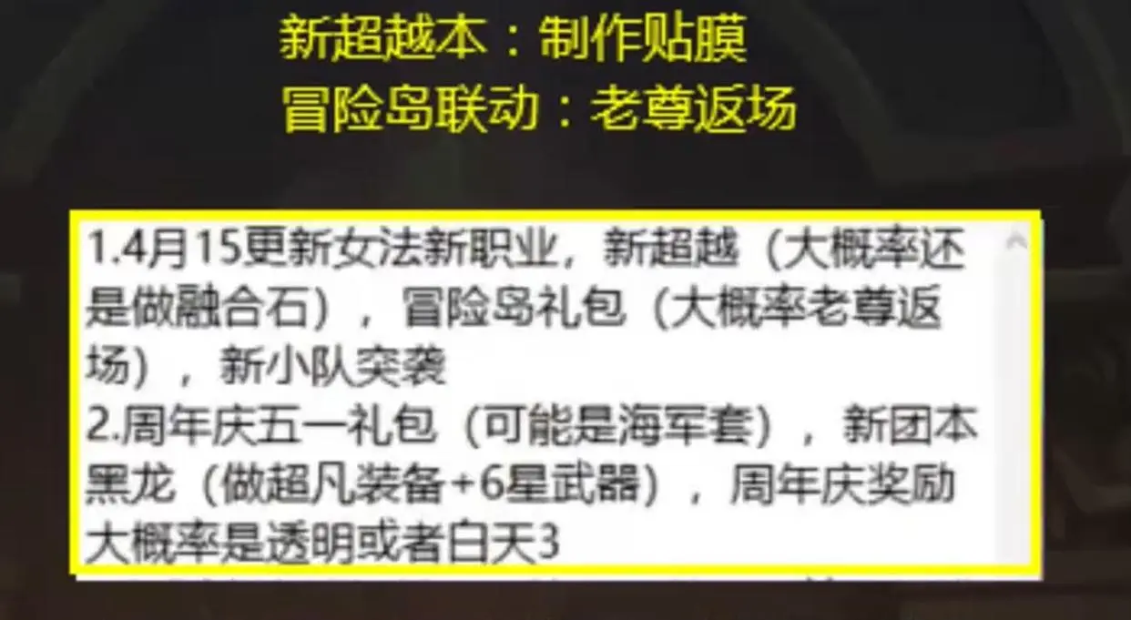 ①四月十五更新节点明确,女法新职业优先体验,新超越副本机制需提前熟悉。