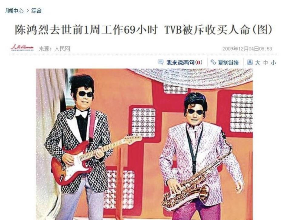 陈鸿烈去世后他的妻子出来控诉 TVB,称陈鸿烈去世前一周工作 69 个小时,是 TVB 的压榨导致陈鸿烈心脏病发,TVB 必须对此负责。